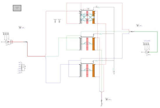 Figure 6 illustrates the basic model of a power system with an autotransformer, corresponding to the scheme from Figure 1, developed in the RTDS environment. It comprises the autotransformer, as well as an equivalent feeding system from both the high and low sides, represented by an electromotive source behind an appropriate impedance dependent on the source short-circuit power. TTFs are simulated in phase L1.