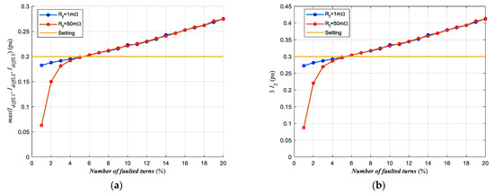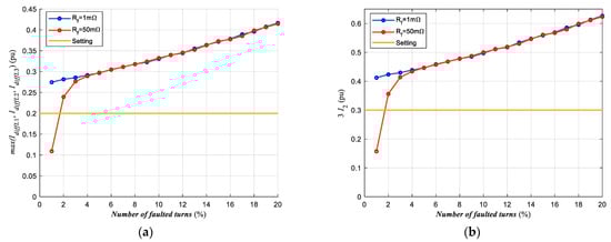 It can be concluded that the proposed method is characterized by better sensitivity than standard differential protection and negative-sequence differential protection (compare the results with those from Section 3).