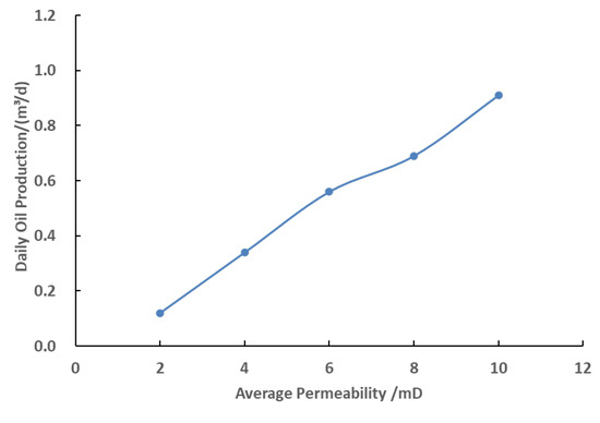 Oil production rates at different permeability levels.