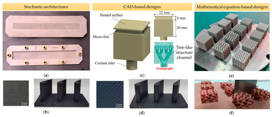 Advanced transpiration cooling structures in recent studies: (a) AM porous Hastelloy-X specimens (Reproduced with permission from [74]. Copyright 2024 Elsevier), (b) AM-fabricated transpiration-cooled cascade blade (Reproduced with permission from [30]. Copyright 2022 Elsevier), (c) Tree-like structure designs (Reproduced with permission from [83]. Copyright 2019 Elsevier), (d) AM-fabricated effusion-cooled cascade blade (Reproduced with permission from [30]. Copyright 2022 Elsevier), (e) Different TPMSs, and (f) Gyroid structures.