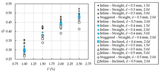 Another parameter used to quantify the efficiency of the flow contraction through transpiration cooling structures and viscous loss due to the tortuosity of the transpiration topology is the discharge coefficient (CD). The CD is defined as the ratio of the actual mass flow rate to the theoretical mass flow rate [75,79], which can be simplified as follows: