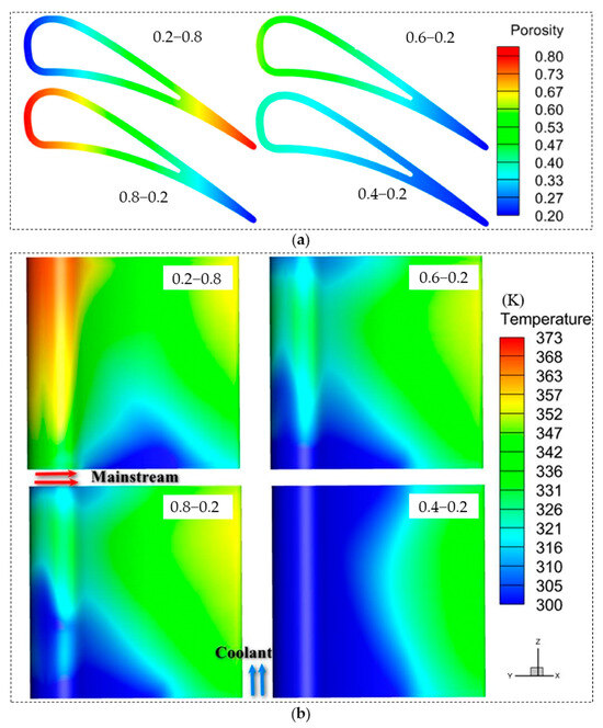 - Huang, G.; He, L. Influence of Inhomogeneous Porosity on Effusion Cooling. Int. J. Heat Mass Transf. 2019, 144, 118675. [Google Scholar] [CrossRef]