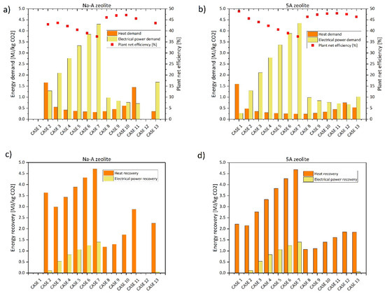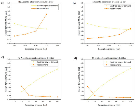 | Zeolite Adsorbent | Adsorption/ Desorption Pressure [bar] | Adsorption Temperature [°C] | CO2 Inlet Concentration [%mass] | CO2 Recovery [%] | Heat Demand [MJ/kgCO2] | Electrical Energy Demand [MJ/kgCO2] | Ref. |