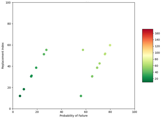 5.1. Results of Probability of Failure, Replacement Index, and Criticality Index