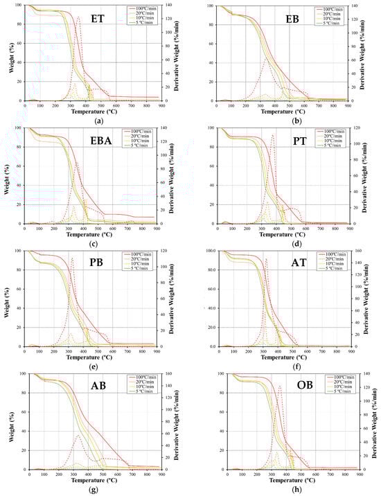 - Ozawa, T. A New Method of Analyzing Thermogravimetric Data. Bull. Chem. Soc. Jpn. 1965, 38, 1881–1886. [Google Scholar] [CrossRef]