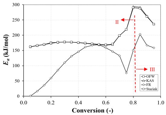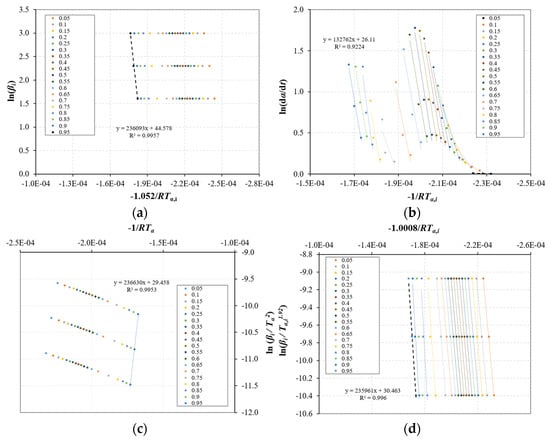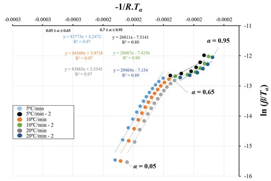 - Starink, M.J. A new method for the derivation of activation energies from experiments performed at constant heating rate. Thermochim. Acta 1996, 288, 97–104. [Google Scholar] [CrossRef]