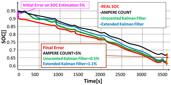 - Locorotondo, E.; Lutzemberger, G.; Pugi, L. State-of-charge estimation based on model-adaptive Kalman filters. Proc. Inst. Mech. Eng. Part I J. Syst. Control. Eng. 2021, 235, 1272–1286. [Google Scholar] [CrossRef]