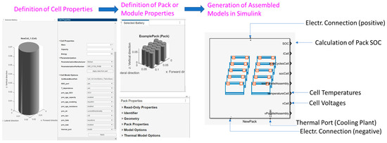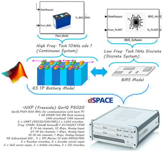 - Safety and Protection: Protection against the maximum current according to the cell’s state is implemented. Allowable currents are estimated from the SOC and temperature measurements through tabulated functions. The voltage and temperature of cells are also monitored.