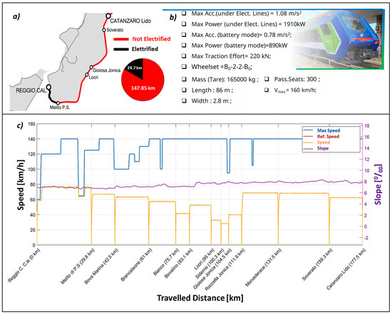 - Pugi, L.; Povolato, T.E.; Tiezzi, N. Simulation of Combined Aging Effects for Battery Operated Trains: A Benchmark Case Study on the Line Between Reggio Calabria and Catanzaro. Energies 2025, 18, 1143. [Google Scholar] [CrossRef]
