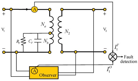 The objective of this section is to propose a fault detection approach based on a state observer applied to transformers with incipient faults represented using the bond graph approach. Considering the transformer with incipient fault in the primary winding to ground, such a scheme is shown in Figure 44.