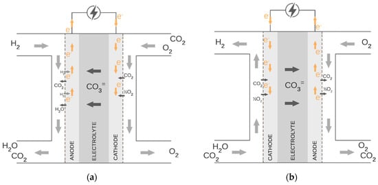 Schematic representation of an (a) MCFC and (b) MCE [16].