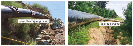 In recent years, with the rapid development of gas pipeline projects [1,2], some routes inevitably pass through mining subsidence areas. A typical example is the intersection between the Mugua Coal Mine in Lishi District, Shanxi Province, and the gas pipeline above its mining area. After coal seam extraction in this region, the movement of rock strata forms a subsidence basin on the surface, causing the pipeline in the subsidence basin to lose soil support and appear as a suspended phenomenon. This phenomenon poses a significant threat to the operational safety of the pipelines [3,4]. In order to protect the safety of natural gas pipelines in the mining area more effectively, many scholars have studied the failure mechanism of pipelines in the subsidence area.