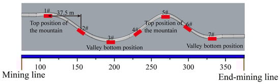 Soil pressure cells were installed above and below the simulated pipeline. The strain gauge system was used to balance and zero the soil pressure cells, ensuring that the monitored stress values directly reflected the actual soil pressure. For systematic analysis, the soil pressure cells above the pipeline were sequentially labeled 11 # to 19 # along the direction from the mining line to the stop line, enabling direct correlation with the corresponding soil pressure cells below the pipeline. This setup facilitated comparative studies of stress asymmetry and load transfer mechanisms between upper and lower soil layers during subsidence progression.