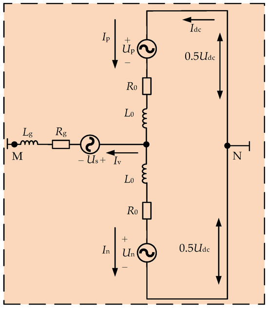 In Figure 3, Udc is the DC-side voltage; Up is the voltage of the upper bridge arm HBSM; Un is the voltage of the lower bridge arm HBSM; L0 is the inductance of the bridge arm; R0 is the resistance of the bridge arm; Us is the grid-side voltage; Lg is the grid-side inductance; Rg is the resistance on the grid side; Ip is the upper bridge arm current; In is the lower bridge arm current; Iv is the grid-side current; and UNM is the potential difference between point N and point M. The value of UNM is generally taken as 0.