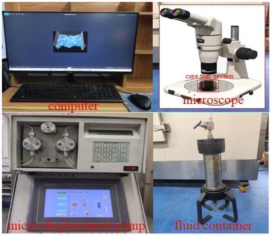 - Displace the core thin section saturated with formation water using simulated oil and observe the images until there is no further change in the images.