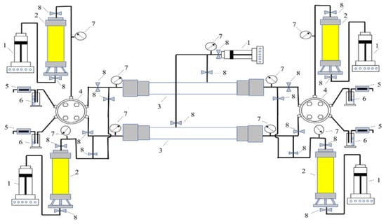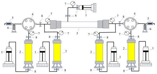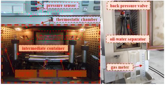 - The fluid displacement experimental conditions were established by injecting reconstituted reservoir crude oil to displace surface-degassed oil under simulated reservoir temperature and pressure conditions. The displacement process was maintained until a constant producing gas–oil ratio was achieved at the outlet.