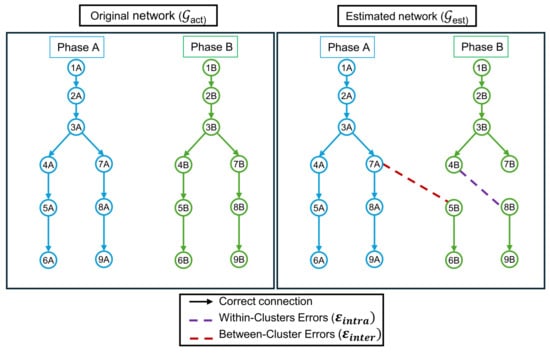 Figure 7 illustrates the topology derived from measurements, while the -based results capture the general radial structure of the actual network, several incorrect links are observed. These inaccuracies can be categorised as follows: