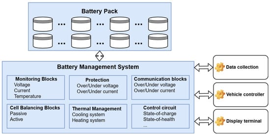 Among the market of available batteries for electric vehicles (EVs), lithium-ion batteries feature high energy density, high power density, long service life, fast charging, a lower self-discharge rate, and environmental friendliness, and thus have found wide application in the area of consumer electronics [27]. The evaluation of the state of batteries in electric vehicles is essential to optimize the energy-management strategy, extend the life cycle, reduce costs, and ensure safe application of batteries in electric vehicles [28]. The primary purpose of a battery management system (BMS) is to ensure safe and optimal use of the battery energy and provide accurate battery state information for the EV’s overall energy management. Alongside this, the BMS should have the capability to give proper interventions for the battery system if it is working in an abnormal condition, such as overcharging or overdischarging. Overcharging of batteries can pose significant safety issues, leading to chemical degradation and short circuits that can cause fires and release hazardous gases. In a similar way, the over-discharging can damage the battery and shorten its lifetime by more than 50%. Precise battery measurement focuses on smaller unit measurements, with millivolt and milliamp accuracy, and time-synchronising these voltages and currents [29]. Accurate and reliable battery state estimation is a critical tool for boosting the lifespan of the battery packs from 10 years to 20 years in the best case and generally result in a 30% lifetime improvement [30].