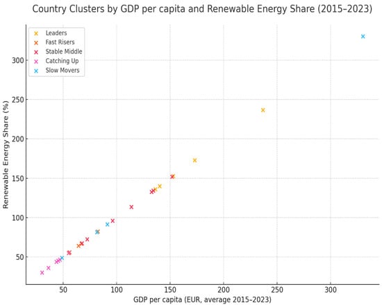 The novelty of this research is demonstrated by the fact that although the relationship between renewable energy and economic factors has been widely studied, this study is among the first to employ a panel-based fixed-effects model, revealing that the change in the investment rate within a country over time has a significant impact on the development of that country’s share of renewable energy. In contrast, most previous research focused exclusively on cross-sectional or structural differences between countries. Furthermore, this study’s classification approach (an analysis of five Member State clusters) enables the formulation of differentiated policy recommendations, which is a unique contribution compared to the existing literature.