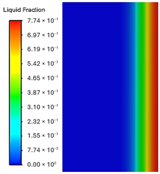 Following Verma et al. [21], the thermophysical properties of Capric acid were implemented as constant values rather than temperature-dependent functions. This simplification is consistent with the validation study and is appropriate for the moderate temperature ranges encountered in our simulations (302–305 K during phase change). The enthalpy-porosity method handles the phase transition by using different property values for solid and liquid phases, with linear interpolation in the mushy zone based on the liquid fraction.