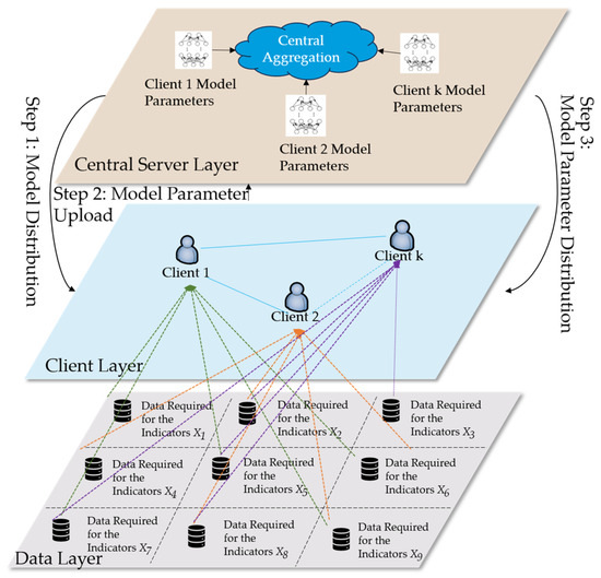 This paper’s organizational framework is structured as follows: Section 2 establishes a novel electricity business environment evaluation system and determines the weights of the indicators within the system. Section 3 primarily presents the theoretical frameworks of federated learning and its main process for application in electricity business environment evaluation. Section 4 verifies the efficacy of the proposed approach and conducts a sensitivity analysis of electricity business environment metrics. Finally, Section 5 concludes by synthesizing the core research outcomes.