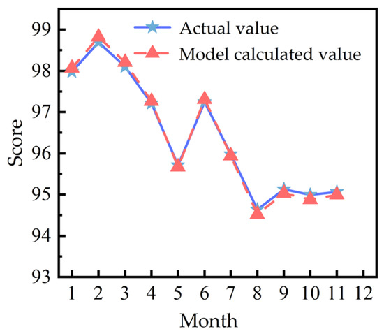 where is the score for the average customer outage time; is the optimal value for the average customer outage time in a month, taken as 0; is the worst value for the average customer outage time in a month, taken as 0.31; and is the average customer outage time for that month. The calculation formula is shown in Formula (12):