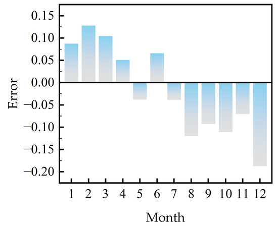 Error between actual and predicted electricity business environment scores for a region in Guangdong Province in 2024.