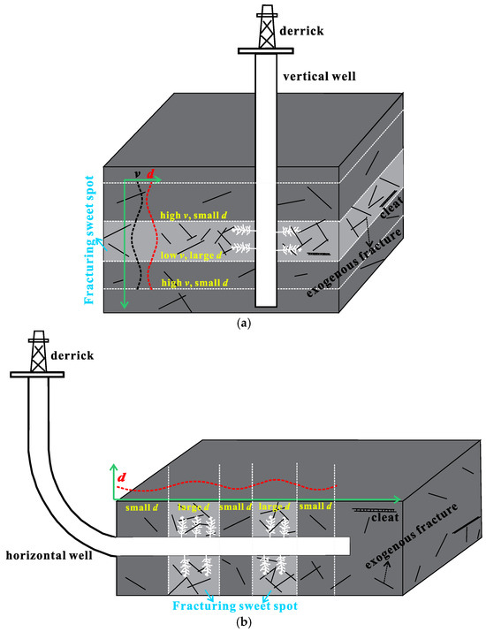 Schematic diagram of fracturing sweet spot optimization in (a) vertical well and (b) horizontal well.