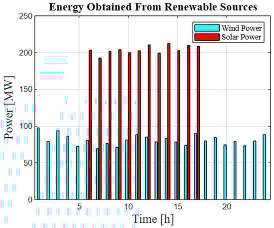 The operation of wind farms and photovoltaic power plants is intermittent due to the stochastic nature of temperature, solar radiation, and wind speed; therefore, an estimate of resource availability must be made prior to planning the economic dispatch. For this purpose, the Monte Carlo method simulates random variables based on probability distribution functions to forecast resource availability over a 24 h horizon [19].