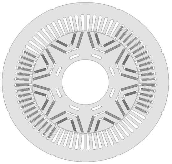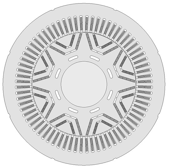 - Nam, T.-H.; Kim, M.-S.; Kwon, Y.-J.; Jeong, D.-H.; Cheo, D.-S.; Hwang, Y.-H.; Jung, S.-Y. Design to improve efficiency and torque ripple through rotor shape design of IPMSM for electric vehicle. In Proceedings of the 2023 KIEE Conference, Chungbuk, Republic of Korea, 19 October 2023. [Google Scholar]