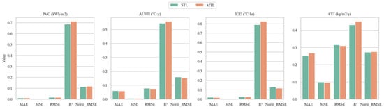 To establish a performance baseline and gain a deeper understanding of each individual sustainability target, single-task learning (STL) models were first developed separately for PVG, AUHII, IOD, and CEI. In the STL framework, each objective was trained independently, allowing for the evaluation of the inherent learnability and modeling complexity associated with each task.