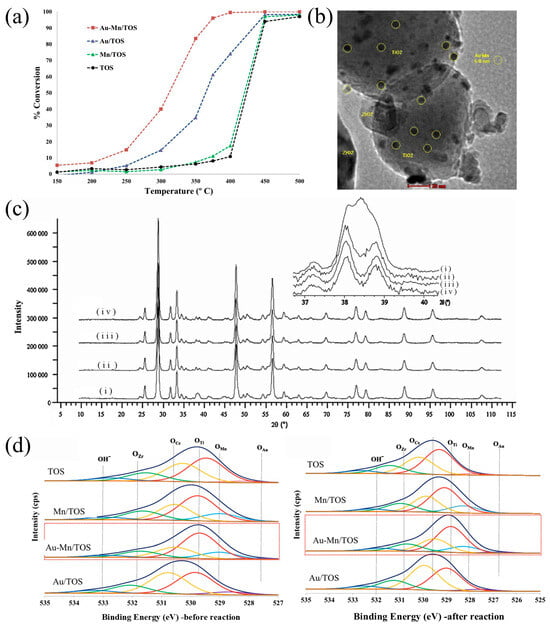 - Ali, A.M.; Daous, M.A.; Khamis, A.A.M.; Driss, H.; Burch, R.; Petrov, L.A. Strong synergism between gold and manganese in an Au–Mn/triple-oxide-support (TOS) oxidation catalyst. Appl. Catal. A Gen. 2015, 489, 24–31. [Google Scholar] [CrossRef]