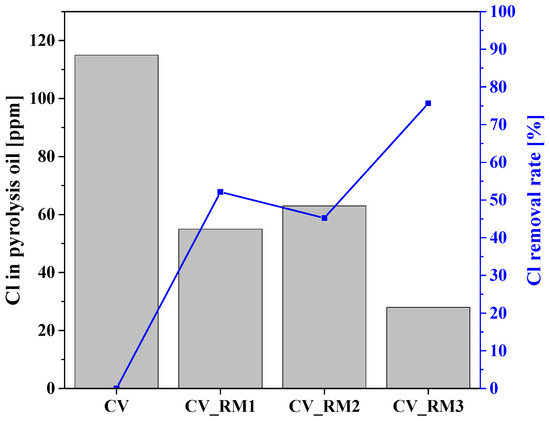 3.3. Chlorine Removal Effect of Red Mud in the Production of Pyrolysis Oil
