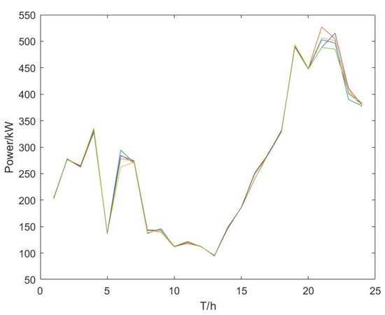 The weighted summation of the above scenarios yields the new energy forecast and load forecast map of this paper, as shown in Figure 8 [27,28].