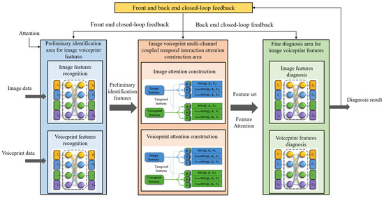 where: , . represents the corrected attention coefficients for the -th data, and represents the initial attention coefficient for the -th data. represents the fine identification result of the image and voiceprint fused data features in time slot . represents the -th fine diagnostic result of the image and voiceprint features in time slot , and represents the fine diagnostic feature index. represents the number of fine-diagnosed features.