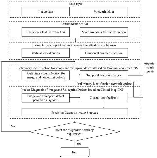 In addition, we propose a method in this section for updating the feature diagnosis model of image and voiceprint data based on closed-loop feedback, which adaptively updates the preliminary identification of image and voiceprint features, the temporal interactive attention of image and voiceprint fusion data, and the fine diagnosis of defect features of image and voiceprint fusion data according to the feature identification results and defect conditions. This can realize the dynamic optimization of the diagnostic model and enhance the comprehensiveness, robustness, and reliability of defect diagnosis.