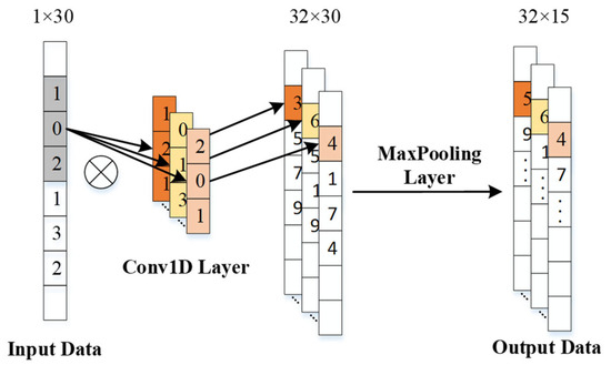 1D-CNN performs convolution operations between the input one-dimensional sequence and the convolutional kernel, effectively capturing local features of the data. Its mathematical model is as follows: