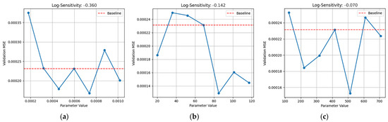 Positive sensitivity scores indicate that increasing the hyperparameter leads to improved model performance, with a decrease in the validation set MSE. Negative sensitivity scores suggest that increasing the hyperparameter results in a decline in model performance, with an increase in the validation set MSE. The absolute value of the sensitivity score reflects the strength of the influence, with larger values indicating higher sensitivity.