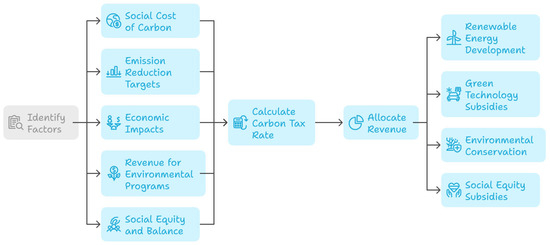 Several previous studies that developed models for formulating carbon taxes were carried out using mathematical models with simulation factor experiments, sensitivity analysis, and decision tree algorithms. The model in [18] uses a dynamic system approach combined with the STIRPAT model, designed to analyze the impact of carbon excise [19]. Another model combines theoretical approaches, fiscal mechanism design, and empirical analysis to support the effectiveness of dynamic carbon tax policies in improving vehicle efficiency and reducing CO2 emissions [20]. The agent-based model approach provides a better context for understanding how the implementation of a carbon tax may impact the development of the cultivated protein industry and its impact on the conventional livestock sector [21]. Carbon tax is a fiscal policy implemented by the government to set a price on carbon emissions from economic activities with the aim of providing economic incentives for companies and individuals to reduce greenhouse gas emissions, which are the main cause of climate change. By providing economic incentives to reduce emissions, the implementation of a carbon tax can encourage the development and adoption of cleaner and environmentally friendly technologies, thereby creating new markets for innovation and green technology [22]. Revenue from the carbon tax can be used to support environmental programs such as investments in renewable energy, environmental conservation programs, and incentives for sustainable mobility. Apart from that, revenue from the carbon tax can also be used to help groups that may be affected by the negative economic impact of this policy. Carbon taxes serve as an economic incentive to encourage carbon emission reductions [23] while internalizing environmental costs into the prices of goods and services [24]. In addition to encouraging green technology innovation [25], carbon tax revenues can be used to support environmental programs [26] and help groups economically impacted by the policy [27]. Carbon taxes provide incentives for companies to invest in green technologies [28,29], and support the transition to renewable energy [30,31], making them more competitive with fossil fuels [32,33]. They also reinforce international commitments to combating climate change [34,35] but require careful planning to mitigate negative economic impacts [36,37], and ensure their effectiveness in reducing carbon emissions [38,39].