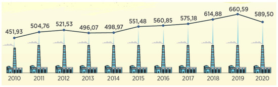 Indonesia’s greenhouse gas emissions 2010–2020 (million tons), reproduced from the Global Carbon Project [71].