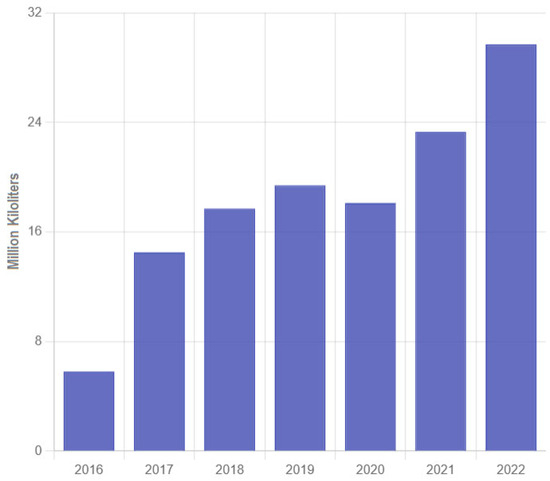 Indonesia’s fuel consumption trend, adapted from the Ministry of Energy and Mineral Resources [75].
