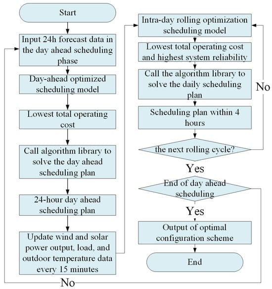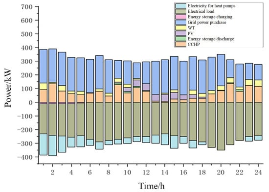 In the day-ahead stage, it is scheduled 24 h in advance, with a scheduling time window of 24 h and a time scale of 1 h. In the day-ahead stage, based on an hourly renewable energy output and load forecasting information, variable operation information with a slow response speed and difficult scheduling is given priority, and the on-off state of the controllable equipment in the next 24 h is determined, so as to optimize the comprehensive operation cost.