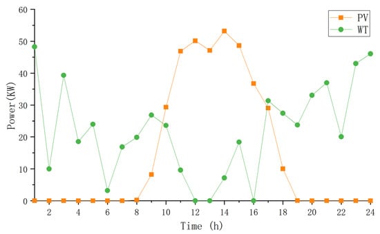 | the predicted power generation of wind power in the time period system | the predicted power generation of photovoltaic in the time period system | ||