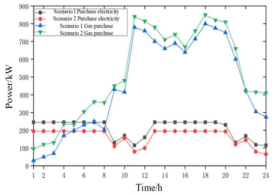 | the price of gas purchased by the system from the market | the exchange power of electricity exchange between the system and the power grid during the time period | ||