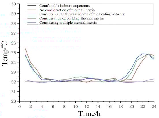 In the thermal system, heating users usually have the characteristics of fuzzy perception and time delay. Therefore, the temperature becomes an important measure to adjust the heat load demand, especially when the user is in the comfort zone, where the user is less sensitive to temperature changes, so fluctuating back and forth within the upper and lower range of the temperature set value will not have much impact on the user. Secondly, the network characteristics of heating systems will also lead to the thermal inertia effect of heat energy transmission, which makes the heat load adjustment rate slow.