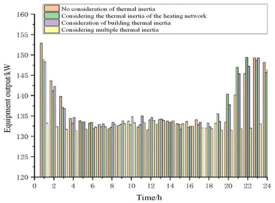 Intra-day rolling optimization is scheduled 4 h in advance, with a scheduling time window of 4 h and a time scale of 15 min. According to the known output of the system and the actual output of wind power and photovoltaic in the current system, the output of different equipment is adjusted, and in response to the influence of thermal inertia on load fluctuation, the reliability and stability of the system are taken as the main objective function, and the operation cost is considered for optimization.