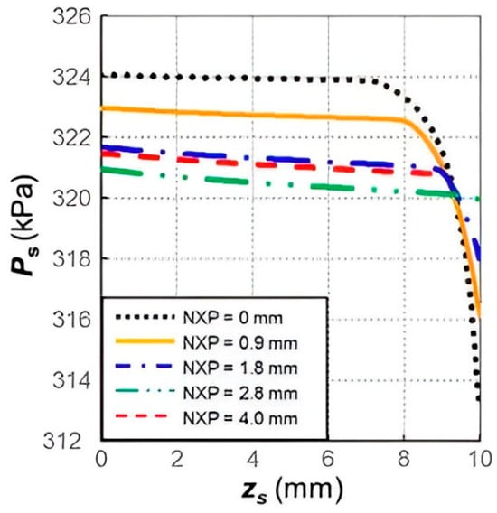 Profile of mean static pressure along the centerline inside the suction channel with different nozzle exit locations, reproduced with permission from [29].