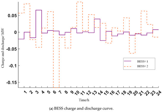 In this equation, denotes the energy capacity of the i-th battery energy storage system (BESS); and represent the charging and discharging power of the i-th BESS, respectively; and denote the charging efficiency and discharging efficiency, respectively. The terms and indicate the charging and discharging power at time t, respectively. The parameters and represent the efficiency of charging and discharging processes.