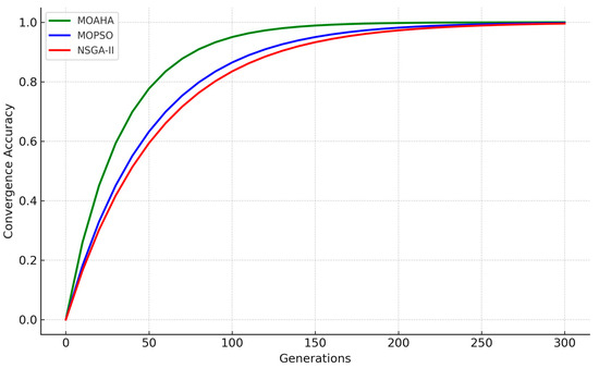 As shown in Table 6 and Figure 7, the MOAHA converges within 200 generations—33% faster than NSGA-II (300 generations) and 29% faster than MOPSO (280 generations). Its HV value (0.823) surpasses that of NSGA-II by 19.3% and that of MOPSO by 15.3%, while its SP metric (0.152) shows 22.6% better solution uniformity than NSGA-II. This confirms the MOAHA’s enhanced capability in solving high-dimensional nonlinear optimization problems for hybrid energy systems.