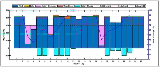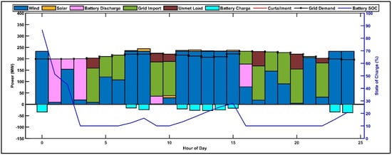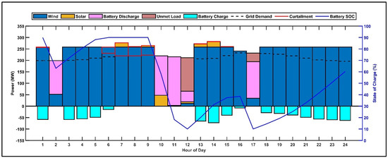 The energy management system (Figure 2) integrates three operational strategies to minimize curtailment while maintaining reliability: battery arbitrage (storing excess generation to avoid curtailment), rule-based dispatch (prioritizing renewable utilization over grid exports), and SOC management (preventing overcharging, which leads to curtailment).